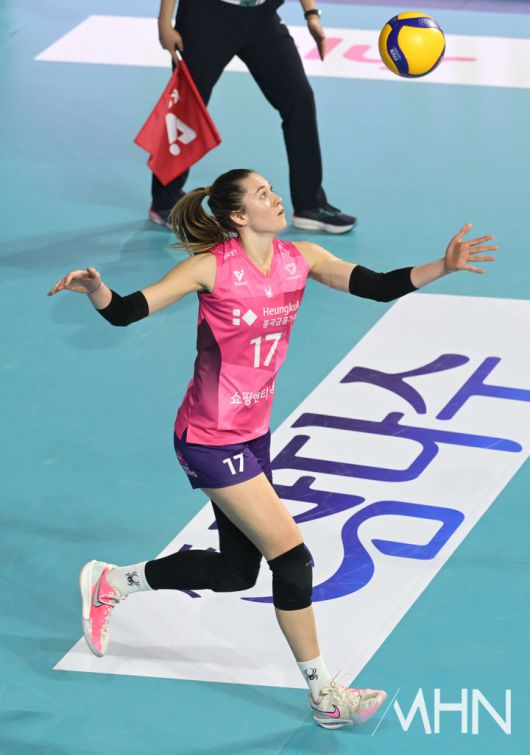 (MHN 인천, 이지숙 기자) 24일 오후 인천 삼산체육관에서 진에어 2025-2026 V리그 여자부 흥국생명과 IBK기업은행의 경기가 열렸다. 흥국생명 레베카가 서브를 시도하고 있다. 한편, 이날 경기는 흥국생명이 IBK기업은행을 세트스코어 3-0으로 꺾고 승리했다. <저작권자 Copyright ⓒ MHN / 엠에이치앤 무단전재 및 재배포 금지>