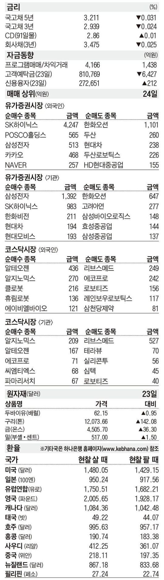 [주식 매매 상위 종목 및 환율] 2025년 12월 24일자