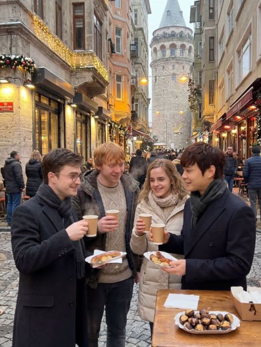 [뉴시스] 마술사 최현우(47)가 호그와트 마법학교를 배경으로 해리 포터·헤르미온느·론 위즐리와 함께 커피를 즐기는 모습. (사진 = 인스타그램 캡처) 2025.12.24. *재판매 및 DB 금지 |