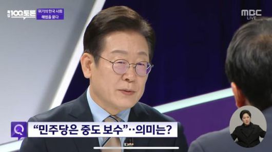 지난 2025년 2월 19일 당시 이재명 더불어민주당 대표가 MBC '100분 토론'에 출연해 발언하고 있다. MBC 유튜브 갈무리 |