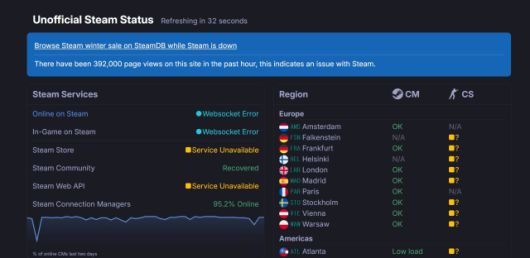 밸브의 모바일 애플리케이션을 통한 접속 불가 사례도 보고됐다. 다만 밸브는 당시 서비스 중단을 공식적으로 인정하지 않았다. 스팀의 최근 대규모 장애는 10월에 발생했으며, 당시 스토어와 온라인 서비스가 약 1시간 동안 중단됐다.