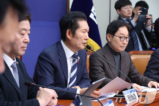 정청래 더불어민주당 대표가 24일 서울 여의도 국회에서 열린 대전·충남 통합 및 충청지역 발전 특별위원회 제1차 전체회의에서 발언하고 있다. 2025.12.24/뉴스1 ⓒ News1 신웅수 기자 |