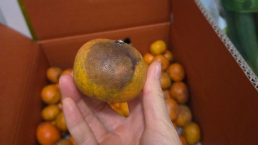 ‘못난이 귤’을 산 소비자가 제주도 누리집에 올린 사진. [제주도청 ‘도지사에게 바란다’ 캡처] |