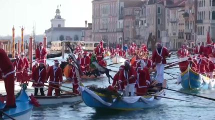낭만적인 '물의 도시' 베네치아에서는 썰매 대신 곤돌라를 탄 산타 수백 명이 노를 저어 대운하를 지나며 큰 웃음을 선사했습니다.