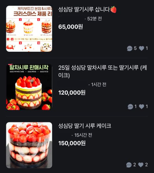 인기가 높아지면서 부작용도 나타났다. 온라인 중고 거래 플랫폼에는 딸기 시루를 정가보다 두 배 가까운 가격에 되파는 게시글이 잇따라 올라왔다. 구매 대행을 내세운 판매 글도 확인됐다.