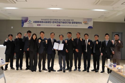 [헤럴드경제=구본혁 기자] 한국건설기술연구원과 서울물재생시설공단은 24일 ‘하수 침전물 기반 광촉매 생산 및 실증을 위한 업무협약’을 체결했다.