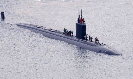23일 부산 해군작전기지에 미 해군 핵 추진 잠수함(SSN) 그린빌함이 입항하고 있다. 연합뉴스 |