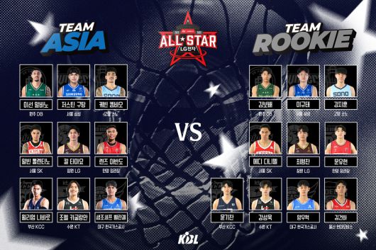 팀 루키에는 에디 다니엘(SK), 강성욱(KT), 양우혁(한국가스공사), 김건하(현대모비스) 등 총 8명의 이번 시즌 신인선수를 포함해 10명의 선수가 선발됐다.