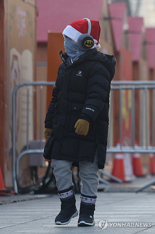 (서울=연합뉴스) 서대연 기자 = 기온이 영하권으로 떨어지며 추운 날씨를 보인 25일 서울 종로구 광화문광장에서 산타 모자를 쓴 어린이가 걷고 있다. 2025.12.25