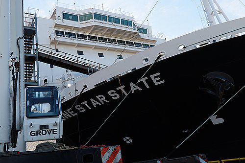네이비야드 내 필리조선소 부지로 들어서자 메인 독인 4번 독에 한화필리조선소가 수주한 5번째 국가안보다목적선박(NSMV)이 건조되고 있었다.