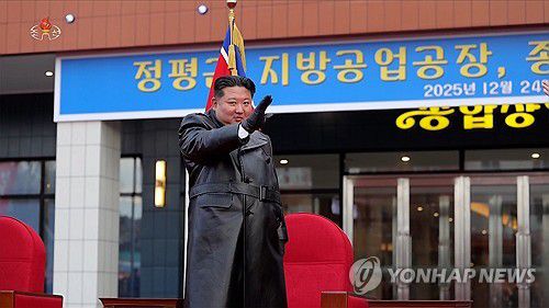 (서울=연합뉴스) 김정은 북한 국무위원장이 지난 24일 '지방발전 20×10 정책'에 따라 건설된 정평군 지방공업공장·종합봉사소 준공식에 참석했다고 조선중앙TV가 25일 보도했다. [조선중앙TV 화면] 2025.12.25