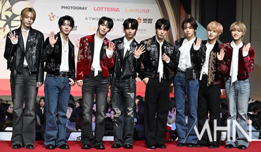 (MHN 인천, 이현지 기자) 그룹 아홉이 25일 오후 인천 중구 인스파이어 아레나에서 열리는 '2025 SBS 가요대전' 포토월에 참석하고 있다.