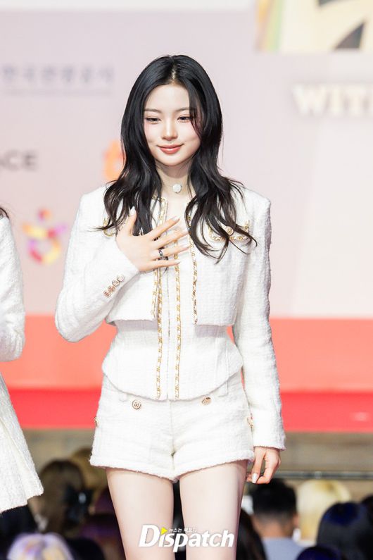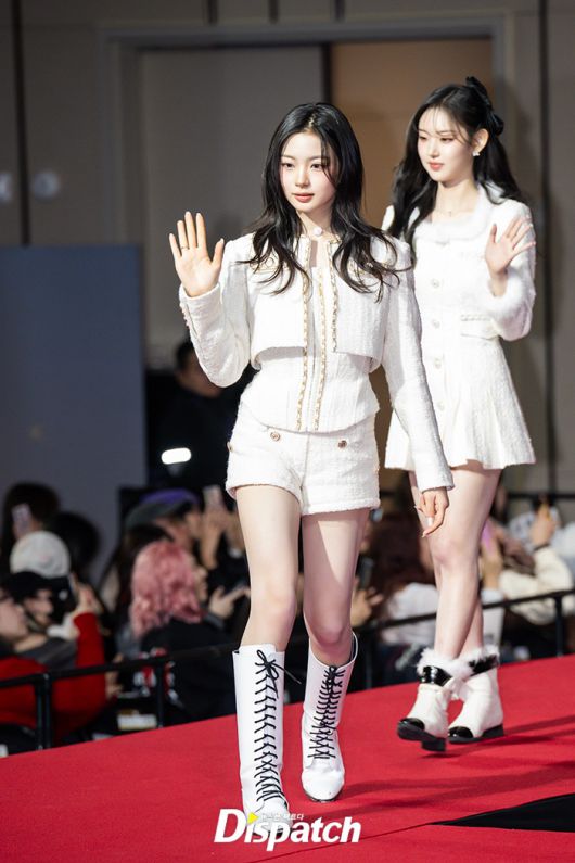 '키키' 키야은 화이트 트위드 의상으로 청순미를 뽐냈다. 인형같은 미모가 시선을 사로잡았다.
