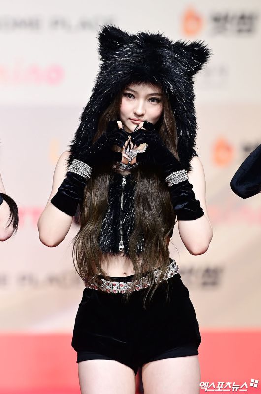 (엑스포츠뉴스 인천, 박지영 기자) 25일 오후 인천 영종도 인스파이어 아레나에서 '2025 SBS 가요대전'이 열렸다. 이날 레드카펫 행사에 참석한 미야오 엘라가 포토타임을 갖고 있다. 박지영 기자 jypark@xportsnews.com