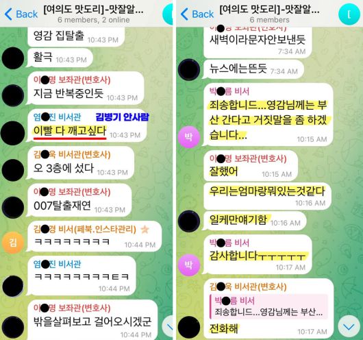 김 원내대표는 이날 소셜네트워크서비스(SNS)를 통해 대한항공 특혜 의혹 등과 관련해 “제보자는 과거 함꼐 일했던 전직 보좌직원으로 추정되고, 교묘한 언술로 공익제보자 행세를 하고 있다”며 자신의 전직 보좌진들의 텔레그램 채팅방 대화를 캡처해 공개했다. 김 원내대표는 “(지난해) 12월 4일 불법 계엄 사태 다음날 6명의 보좌직원이 만든 ‘여의도 맛도리’라는 비밀 대화방을 알게 됐다”며 “가식적인 겉웃음 뒤에서 내란을 희화화하고, 여성 구의원을 도찰해 성희롱하고, 차마 입에 담긴 어려운 말로 저와 가족을 난도질하고 있었다”고 했다.