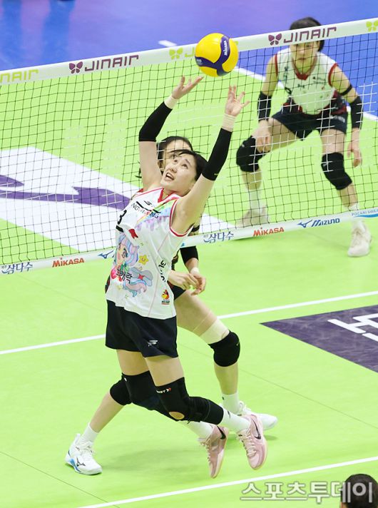 [수원(경기)=스포츠투데이 권광일 기자] 2025-2026 진에어 V-리그 여자부 현대건설과 정관장의 경기가 25일 경기도 수원시 수원체육관에서 열렸다. 정관장 연혜선이 점프 토스를 하고 있다. 2025.12.25. [스포츠투데이 권광일 기자 sports@stoo.com]