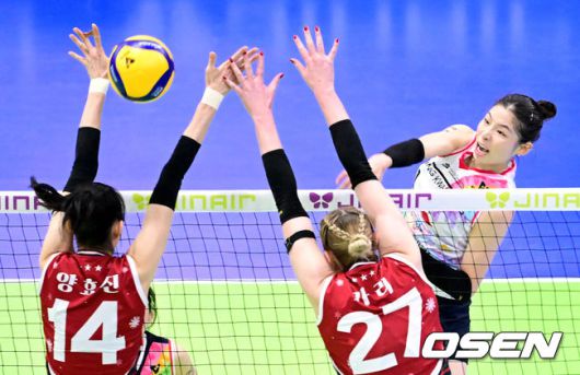 [OSEN=수원, 최규한 기자] 25일 경기도 수원체육관에서 ‘진에어 2025~2026 프로배구 V리그’ 여자부 현대건설과 정관장의 경기가 열렸다. 홈팀 현대건설은 11승 6패 승점 34, 방문팀 정관장은 5승 11패 승점 14를 마크하고 있다. 1세트, 정관장 인쿠시가 공격을 시도하고 있다. 2025.12.25 / dreamer@osen.co.kr
