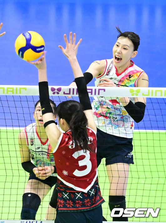 [OSEN=수원, 최규한 기자] 25일 경기도 수원체육관에서 ‘진에어 2025~2026 프로배구 V리그’ 여자부 현대건설과 정관장의 경기가 열렸다. 홈팀 현대건설은 11승 6패 승점 34, 방문팀 정관장은 5승 11패 승점 14를 마크하고 있다. 1세트, 정관장 이선우가 공격을 시도하고 있다. 2025.12.25 / dreamer@osen.co.kr