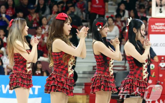 (안양=뉴스1) 김명섭 기자 = 25일 오후 경기도 안양시 정관장아레나에서 열린 2025-2026 LG전자 프로농구 정규리그 안양 정관장과 원주 DB의 경기에서 안양 정관장 치어리더들이 캐럴에 맞춰 응원을 하고 있다. 2025.12.25/뉴스1msiron@news1.krCopyright ⓒ 뉴스1. All rights reserved. 무단 전재 및 재배포, AI학습 이용 금지.