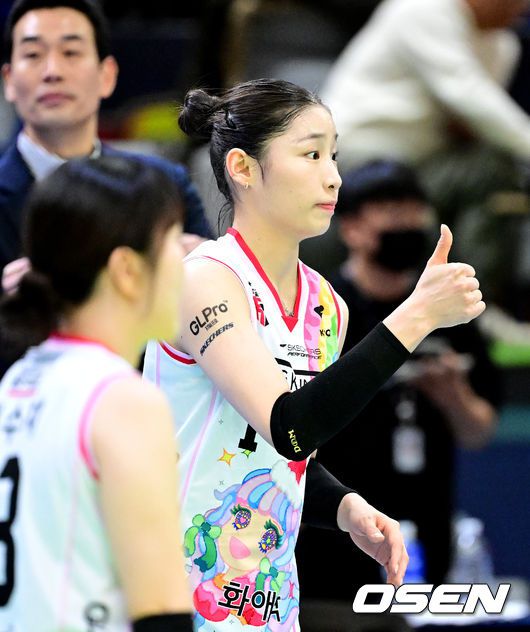 [OSEN=수원, 최규한 기자] 25일 경기도 수원체육관에서 ‘진에어 2025~2026 프로배구 V리그’ 여자부 현대건설과 정관장의 경기가 열렸다.