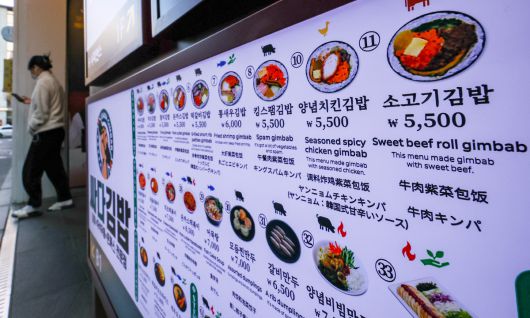 특히 먹거리 가격이 들썩이고 있다. 국가데이터처의 지난달 식품물가지수(2020년=100)는 127.1로, 2020년보다 27.1% 상승했다. 같은 기간 전체 소비자물가지수가 17.2% 오른 것과 비교하면 식품물가 상승률은 이보다 10%포인트 가까이 높다. 수입 농축수산물, 수입 원재료 의존도가 높은 가공식품은 환율 변동에 민감해 이들 가격이 오르면 외식 물가까지 연쇄적으로 상승하는 경향이 있다.