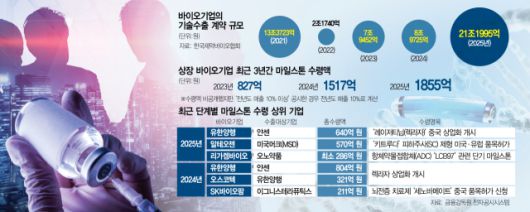 신약 기술수출 이후 임상·허가 등 성과를 달성할 때마다 지급되는 대가인 마일스톤이 늘어난 점은 신약 탄생의 희망을 높이는 요소다. 유한양행은 얀센에 기술수출한 항암제 ‘렉라자’의 중국 상업화로 640억 원을 수령했고, 리가켐바이오(141080)사이언스는 오노약품으로부터 항체약물접합체(ADC) ‘LCB97’에 대해 최소 286억 원 수령했다. 마일스톤 수령은 바이오 기업에게는 꾸준한 수익원일 뿐만 아니라 블록버스터의 꿈도 영글어 가고 있음을 의미한다.