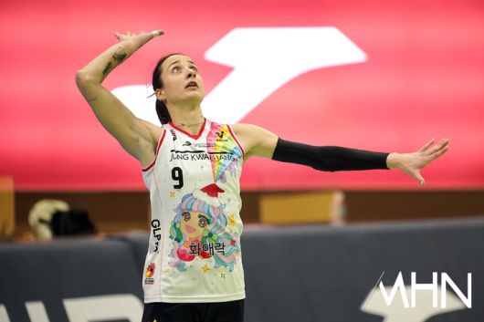 (MHN 수원, 박태성 기자) 25일 수원실내체육관에서 '2025-2026 V-리그 여자부' 현재 6연승으로 2위(11승6패)를 달리는 현대건설과 7위(5승11패) 정관장 경기가 열렸다. 크리스마스를 맞아 전석 매진 경기를 펼치고 있다. 자네테가 경기를 펼치고 있다. <저작권자 Copyright ⓒ MHN / 엠에이치앤 무단전재 및 재배포 금지>