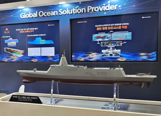 한화오션이 지난해 제주 국제컨벤션센터(ICC)에서 열린 '2024 한국군사과학기술학회(KMIST) 종합학술대회'에 참가해 총 5건의 논문을 공개하면서 미래 함정 개발에 필요한 핵심 기술의 선행 연구개발 성과를 공유했다고 14일 밝혔다. 사진은 한화오션이 KMIST에서 전시한 한국형 차기 구축함(KDDX) 모형. 연합뉴스 |