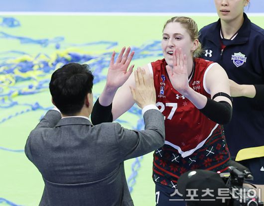 현대건설이 정관장을 상대로 세트스코어 3-2 역전 승리를 하고 있다. 2025.12.25.