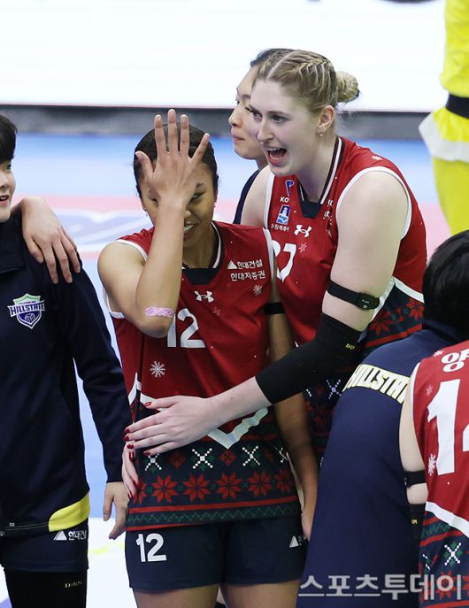 현대건설이 정관장을 상대로 세트스코어 3-2 역전 승리를 하고 있다. 2025.12.25.