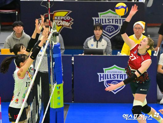 (엑스포츠뉴스 유준상 기자) 여자프로배구 현대건설이 7연승을 질주했다.