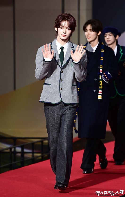 이날 레드카펫 행사에 참석한 투어스 한진이 포토타임을 갖고 있다.