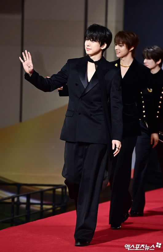 (엑스포츠뉴스 인천, 박지영 기자) 25일 오후 인천 영종도 인스파이어 아레나에서 '2025 SBS 가요대전'이 열렸다. 이날 레드카펫 행사에 참석한 앤팀 후마가 포토타임을 갖고 있다. 박지영 기자 jypark@xportsnews.com