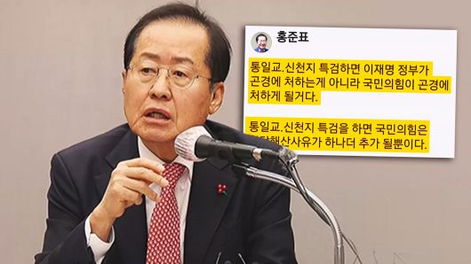 지금 정치권에서 통일교 특검 구성을 놓고 줄다리기를 벌이고 있는데 홍준표 전 대구시장이 "국민의힘 더러 특검을 받는 건 아닌 거 같다"는 경고를 한 겁니다.