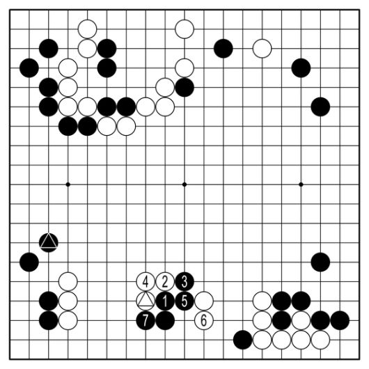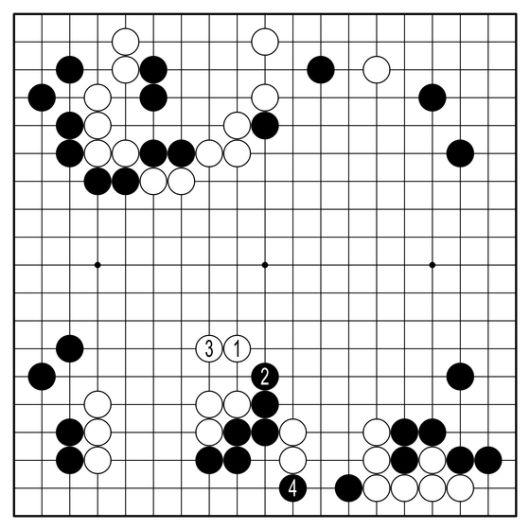◆절대의 한 수=백1의 수비가 백의 안위를 지키는 절대의 한 수였다. 이 수비는 그리 어려운 수가 아니다. 프로에게 문제를 낸다면 정답률이 100%일 것이다. 하나 속기의 리친청은 이 수를 찾지 못했다. 공격자의 위치에서 갑자기 수비로 돌아서기가 심리적으로 쉽지 않았던 것일까.