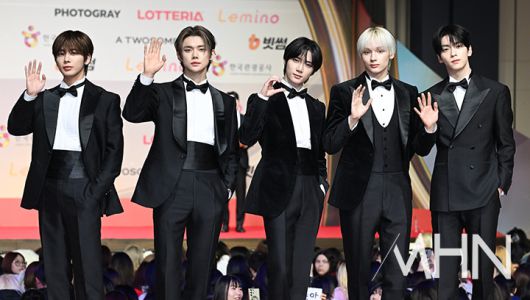 (MHN 인천, 이현지 기자) 그룹 투모로우바이투게더가 5일 오후 인천 중구 인스파이어 아레나에서 열리는 '2025 SBS 가요대전' 포토월에 참석하고 있다.