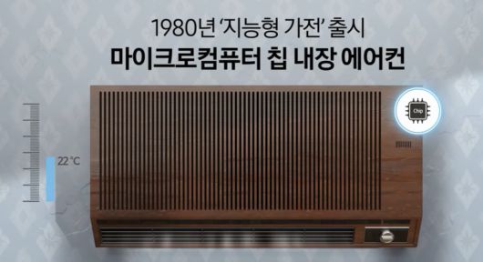 삼성전자가 공개한 가전 티저 영상에서 1980년 출시된 마이크로컴퓨터 칩 내장 에어컨을 소개했다. 삼성전자 제공 |