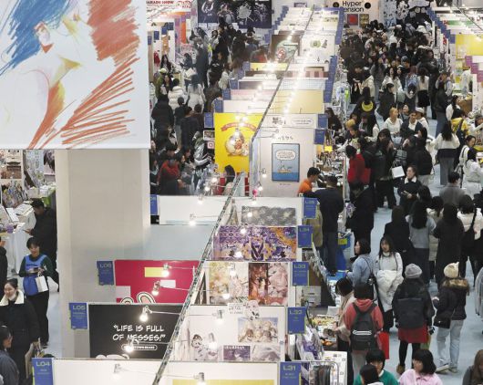 /뉴스1 25일 서울 강남구 코엑스에서 개막한 ‘서울일러스트레이션페어 V.20’에서 관람객들이 부스를 둘러보고 있다. 28일까지 일러스트레이션, 그래픽디자인, 캘리그라피, 타이포그라피 등을 전시한다. [조선일보] - Copyrights ⓒ 조선일보 & chosun.com, 무단 전재 및 재배포 금지 -