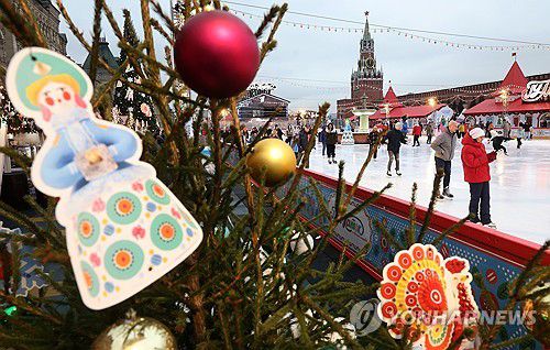 크렘린궁 앞 붉은광장의 크리스마스 장식과 야외 스케이트장 |