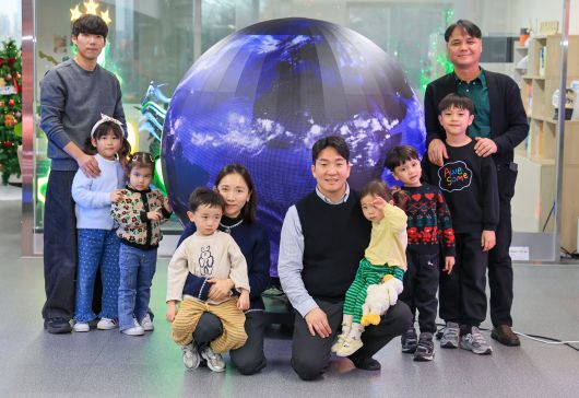 지난 23일 서울 중랑구 디스플레이허브 본사에서 직원들과 자녀들이 웃고 있다. 이 회사는 재택근무, 금요일 오후 3시 조기 퇴근 등 다양한 일·가정 양립 제도를 운영해 지난 5월 고용노동부 ‘남녀고용평등 우수기업’ 장관상을 받았다. /박성원 기자 |
