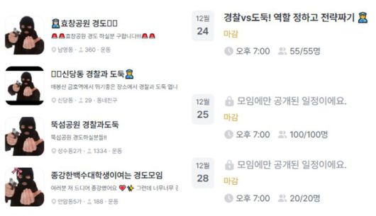 [서울=뉴시스]김수빈 인턴 기자 = 최근 MZ세대를 중심으로 추억의 술래잡기 놀이 '경찰과 도둑(경도)' 모임이 연말을 앞두고 유행처럼 번지고 있다.