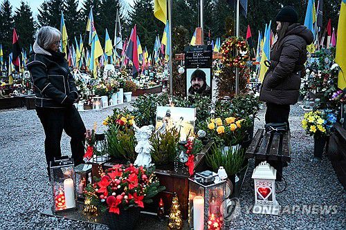 성탄을 앞두고 르비우의 전사자 묘역을 찾은 우크라이나 시민들 |