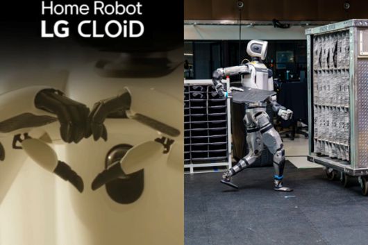 LG전자가 2026년 1월 세계 최대 정보기술(IT)·가전 박람회인 CES2026에서 공개하겠다고 예고한 홈 로봇 클로이드의 티저 영상(왼쪽)과 현대차그룹의 휴머노이드 아틀라스. LG전자·현대차그룹제공 |