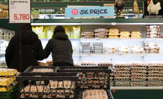 달걀 가격의 오름폭이 커지는 가운데 소비자들이 25일 서울 한 대형마트 판매대에서 달걀을 고르고 있다. 축산물품질평가원에 따르면 달걀 특란 한 판(30개)의 평균 소비자가격은 지난 24일 기준 6835원으로 12월 평년 가격(6501원)에 비해 5.1% 비싸다.