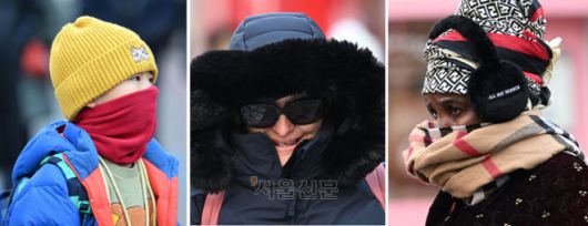 꼭꼭 숨겨라… K추위 만만찮네 - 크리스마스인 25일 영하권의 추운 날씨에 겨울 외투와 털모자, 목도리 등으로 중무장한 어린이 등 시민들과 외국인 관광객들이 서울 중구 명동성당 근처를 지나고 있다. 홍윤기 기자 |