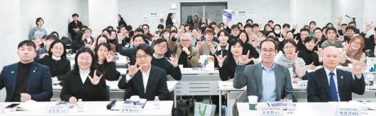 19일 열린 ‘한국수어통역방송 품질향상 종합세미나’에 참석한 장애 당사자, 수어통역사, 방송사 관계자들이 기념촬영을 하고 있다. [사진 방미통위] |