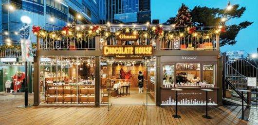 네 번째 시즌을 맞은 올해의 ‘가나 초콜릿 하우스’는 크리스마스 분위기로 꾸며져 이달 문을 열었다. 약 730평 규모의 롯데월드타워 월드파크 잔디광장에서 개최되는 ‘롯데타운 크리스마스 마켓’ 내 스페셜 부스로 마련됐으며, 오는 1월 4일까지 운영된다.