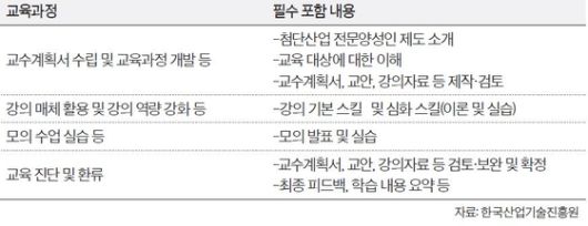 아무리 뛰어난 현장 전문가라도 교육은 별도의 준비가 필요한 만큼, 첨단산업 인재혁신센터는 전문양성인을 위한 온·오프라인을 병행 등록 교육과정을 개설했다.