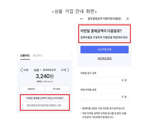 “이번 달 결제할 금액이 부담스러우세요?” “리볼빙을 체험해보세요!”