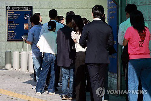 2025년 9월15일 서울 종로구 주한미국대사관에서 미국 비자를 발급받으려는 시민들이 줄을 서고 있다. [연합뉴스 제공] |